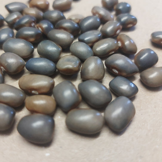 A great rare variety producing beautiful beans suitable for fresh shelling or dried beans. They produce gorgeously coloured beans varying from navy blue to a grey brown colour. Grey colour tends to be most prevalent when growing in hot weather, the current batch is more grey / brown. Climbing.
