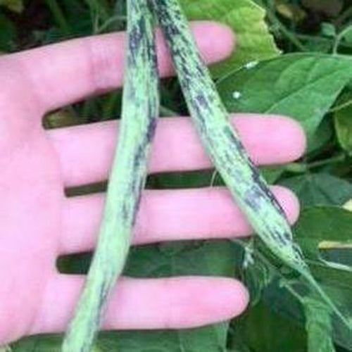 This variety is one of the best tasting heirloom beans around, producing green bean pods mottled with purple streaks.