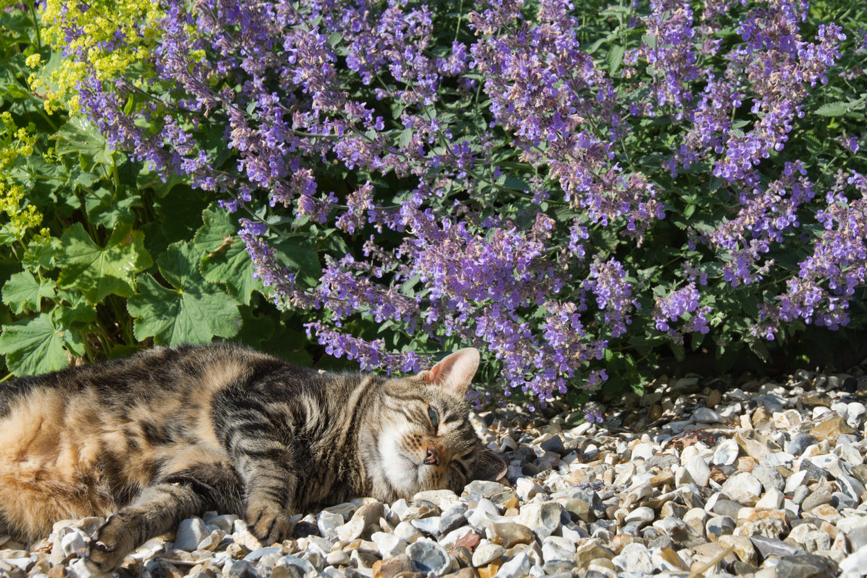 Catnip has been long known for its effect on cats, so why not add some to your garden for your own cat? Even without its effect, the flower and general appearance of the plant are enough to make it a worthy subject in the garden. The foliage is a silvery colour with a soft texture whilst the purple flowers are a feature in themselves.