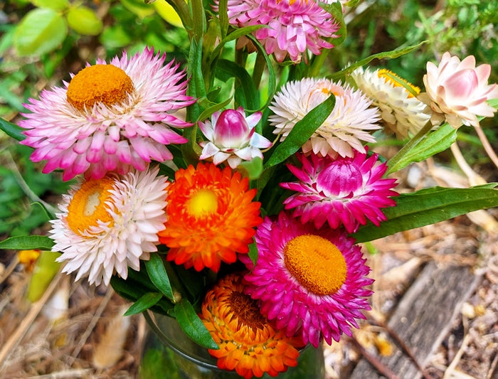This native flower produces attractive paper like flowers that keep their flowers through long hot summers unlike many other flowers. Attracts beneficial insects like butterflies. Excellent for use in flower arranging and drying for crafts. This mix contains a range of colours from red, gold, pink, yellow, purple, salmon, copper and white. Seed count calculated by weight for accuracy. Suitable for pots and containers.