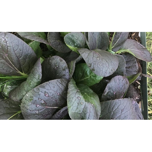 This is a fast growing asian vegetable that is popular in Japan and Taiwan. It can be used at any stage of its growth - for leaves and stalks and is commonly stir fried, pickled, boiled, steamed, added to soups or used in salads. It is also known to be very high in calcium. Colouring can vary from dark purple to a more greenish colour with purple blush depending on sun exposure. Darker colour prominent in direct full sun.