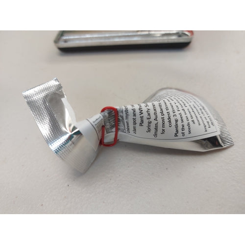 If you only need a few seeds at a time and would like to store the rest, paper clips are a good option to reseal them for storage.
