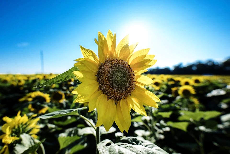 This sunflower produces medium sized heads with pale lemon coloured petals.