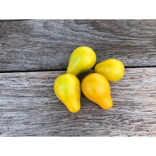 This is an heirloom variety which produces small cherry yellow pear shaped fruit on a bushy plant. Better at saving space than most tomatoes but still loaded with sweet little fruits. An excellent salad variety!